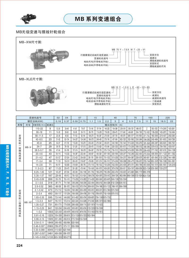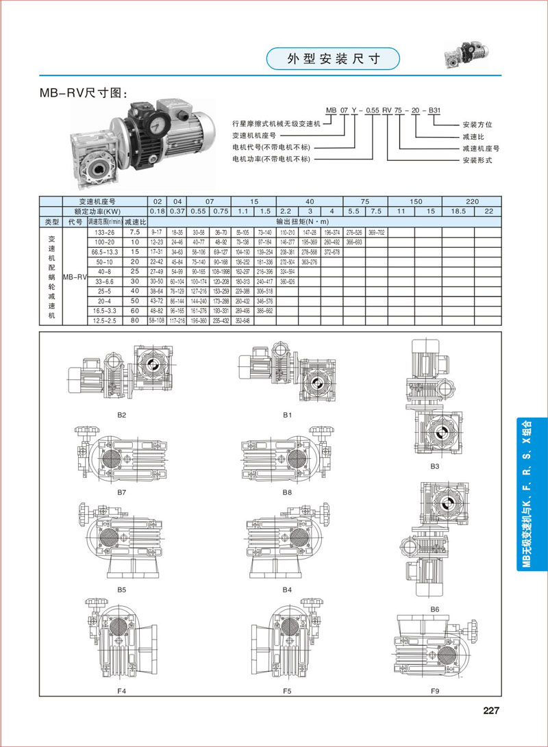產品參數 >> MB無級變速機與KFRSX組合-