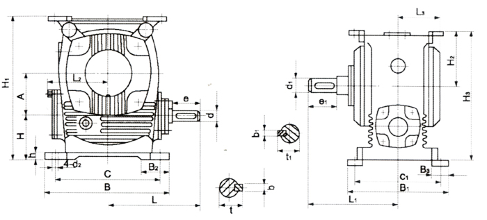 WHC一蝸桿在蝸輪之側的圓弧齒圓柱蝸桿減速器。