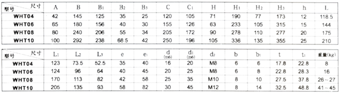 WH系列圓弧齒圓柱蝸桿減速器,符合部頒標準jB2318—79,達到標準化、系列化的要求。適用于冶金、礦山、起重、運輸、化工、建筑等各種機械設備的減速傳動。本系列減速器輸入功率范圍在O.4~l 63Kw之間;輸出扭矩在Il~2600kgf·m之間,輸入軸轉數一般不大于l 500轉/分;高速軸可正反兩向運轉;工作環境溫度為一40℃~45℃·當工作環境溫度低于0℃時,起動前潤滑油必須加溫到0℃以上。