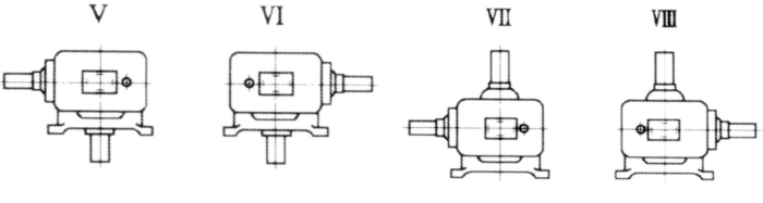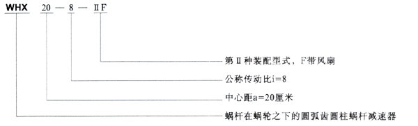 減速器型號中的“w、H、T、X、s、c”分別為“蝸、弧,通、下、上、側”的漢語拼音字頭,組合為